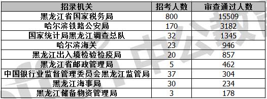 截止到11月6日16時,通過審核人數(shù)前三位的部門依次是:黑龍江省國家稅務局、哈爾濱鐵路公安局、國家統(tǒng)計局黑龍江調查總隊,三部門通過審核總人數(shù)達20036人,占通過審核總人數(shù)的85.19%。其中黑龍江省國稅局審核通過人數(shù),與去年同期相比增加了4381人。