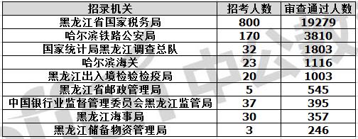 截止到11月7日16時,通過審核人數(shù)前三位的部門依次是:黑龍江省國家稅務(wù)局、哈爾濱鐵路公安局、國家統(tǒng)計局黑龍江調(diào)查總隊,三部門通過審核總?cè)藬?shù)達(dá)24892人,占通過審核總?cè)藬?shù)的85.28%。其中黑龍江省國稅局審核通過人數(shù),與去年同期相比增加了5595人。