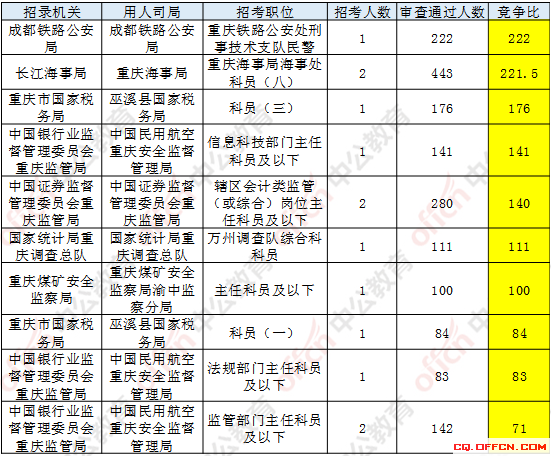 報名競爭最激烈的前十的職位