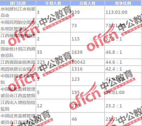 截至11月7日16時(shí),據(jù)中公教育統(tǒng)計(jì),國(guó)考職位中工作地點(diǎn)在江西的職位報(bào)名人數(shù)為19799人,通過(guò)審核總?cè)藬?shù)為15169人,共有2個(gè)職位無(wú)人通過(guò)審核,平均競(jìng)爭(zhēng)比例為40:1。