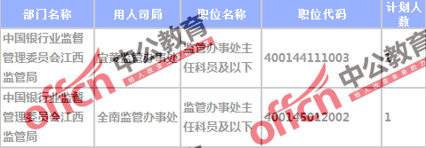 截止到7日16時(shí),工作地點(diǎn)在江西的職位只有2個(gè)無(wú)人報(bào)考,僅占全部職位的0.6%。下面是無(wú)人報(bào)考職位一覽表,中公網(wǎng)校專家建議廣大考生多關(guān)注一些較冷職位,避免激烈競(jìng)爭(zhēng),結(jié)合自身?xiàng)l件,找到屬于自己的職位。