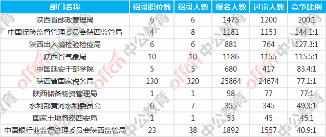 陜西國(guó)考報(bào)名競(jìng)爭(zhēng)最激烈的十大部門(mén)
