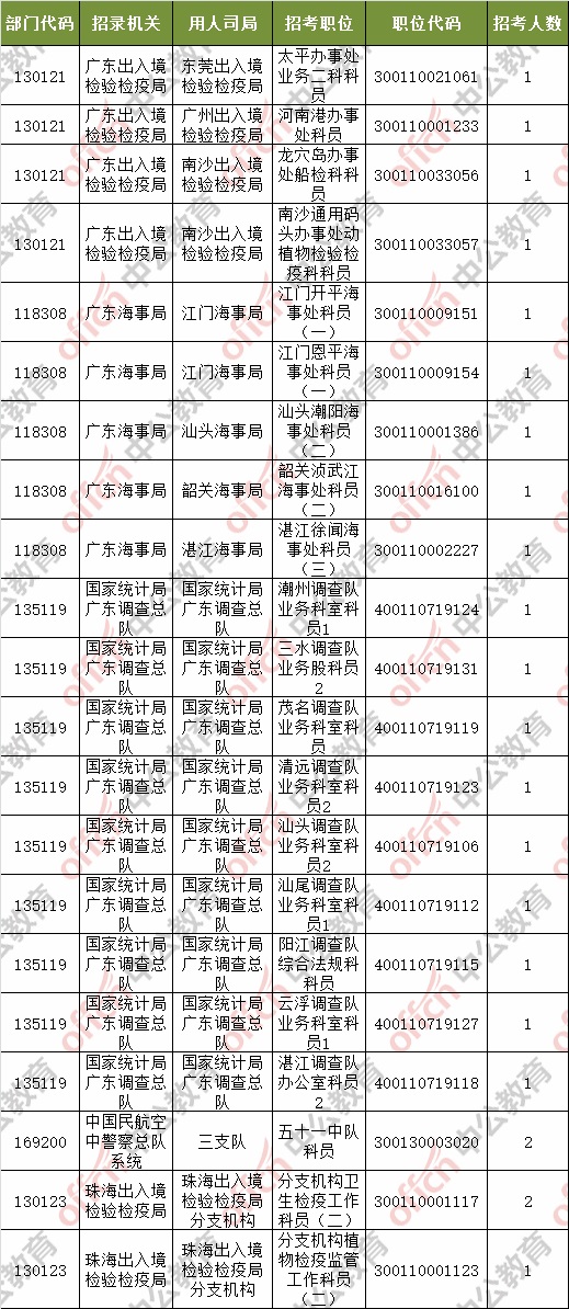 截止到8日17時(shí)30分,工作地點(diǎn)在廣東的職位共有21個(gè)無(wú)人報(bào)考,占全部職位的1.59%。下面是無(wú)人報(bào)考職位一覽表,中公網(wǎng)校專家建議廣大考生多關(guān)注一些較冷職位,避免激烈競(jìng)爭(zhēng),結(jié)合自身?xiàng)l件,找到屬于自己的職位。