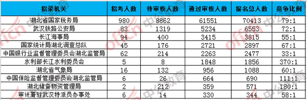 湖北報(bào)名競(jìng)爭(zhēng)最激烈的十大部門