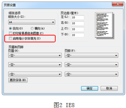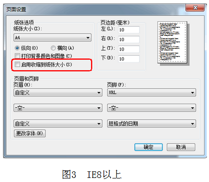 1、使用IE瀏覽器打印時(shí),請(qǐng)首先進(jìn)入瀏覽器菜單【文件】-【頁(yè)面設(shè)置】(圖1),將 “啟用縮小字體填充”(IE8,圖2)或“啟用收縮到紙張大小”(IE8以上,圖3)勾選項(xiàng)去掉后,點(diǎn)擊確定,然后再打印報(bào)名表或準(zhǔn)考證;