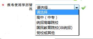 “報(bào)考使用學(xué)歷情況”有4個(gè)選擇項(xiàng)。