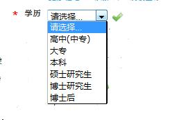 “學(xué)歷”有6個(gè)選擇項(xiàng)。