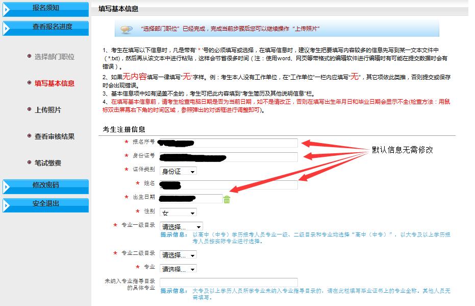 “考生注冊(cè)信息”部分已默認(rèn)填寫完畢。