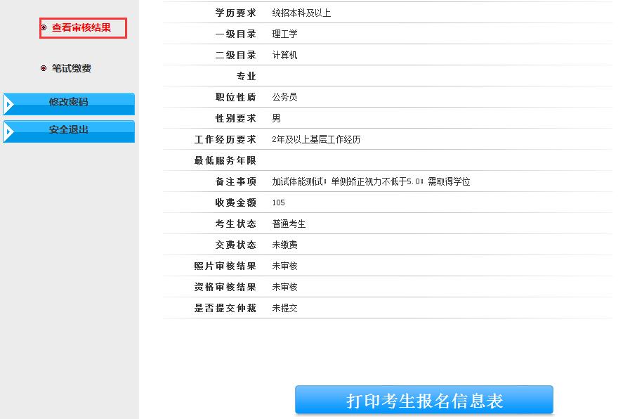 人工審核需要等待一段時(shí)間,如資格審核結(jié)果“未審核通過”,則需根據(jù)原因進(jìn)行修改,或更改其他可報(bào)崗位;如照片審核結(jié)果是“審核未通過”,則需重新上傳照片。