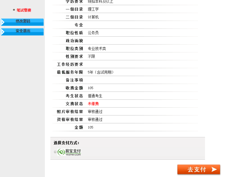 點(diǎn)擊“去支付”,進(jìn)行繳費(fèi)。