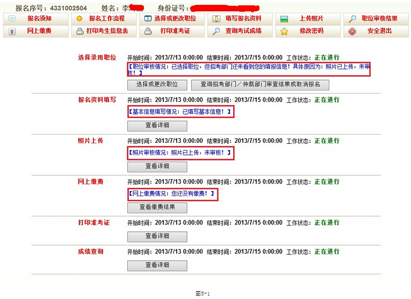 資格審核通過后,即可點(diǎn)擊‘網(wǎng)上繳費(fèi)’進(jìn)行繳費(fèi)操作,如果審核沒通過就會(huì)有圖6-1的提示。