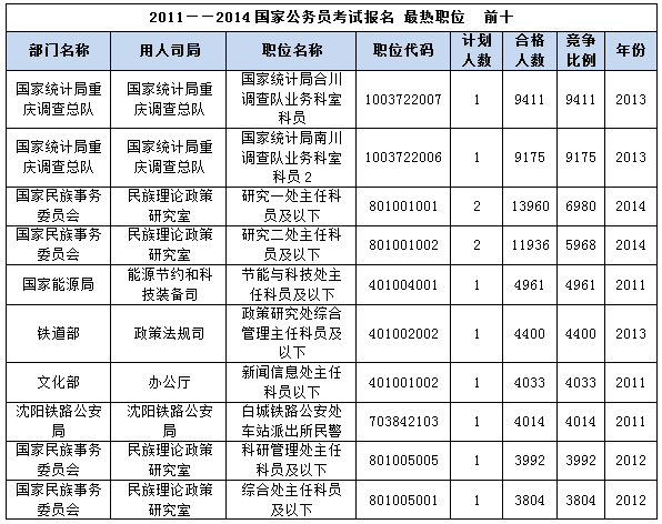 2011-2014國(guó)家公務(wù)員考試報(bào)名之最盤點(diǎn):最熱職位