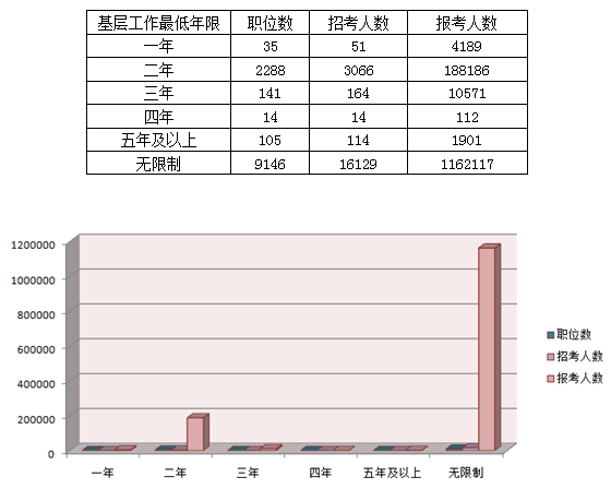 2014國(guó)家公務(wù)員考試報(bào)名:基層工作經(jīng)驗(yàn)報(bào)名人數(shù)統(tǒng)計(jì)