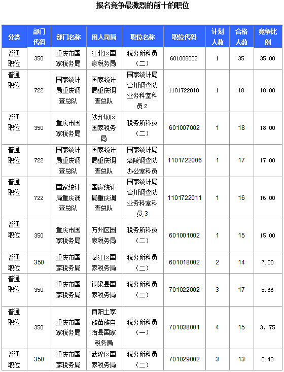 [截至16日8時(shí)]2015國考報(bào)名重慶通過審核人數(shù)為640人 最熱職位35:1