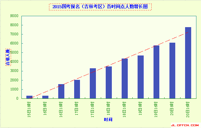 2015吉林國考報(bào)名各時(shí)間點(diǎn)人數(shù)增長情況