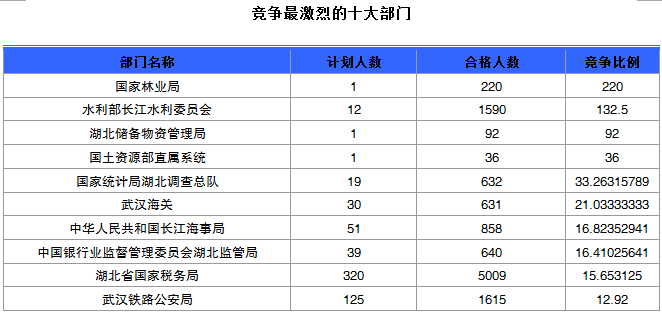 為幫助廣大考生更清晰的了解今日報(bào)名情況,中公教育整理了審核通過人數(shù)前十位的部門以及競爭比例最激烈的十大部門,供廣大考生參考: