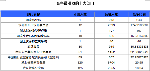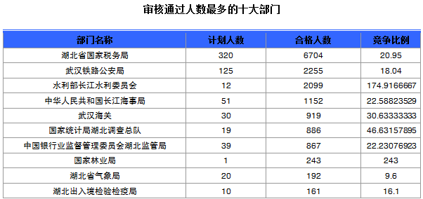 截至22日8時,通過審核人數(shù)前三位的部門依次是:湖北省國家稅務(wù)局、武漢鐵路公安局、水利部長江水利委員會,三部門通過審核總?cè)藬?shù)達11058人,占通過審核總?cè)藬?shù)的69.4%。
