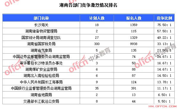 截至22日8時,競爭最熱部門為“長沙海關(guān)”,競爭比例為75.5:1。