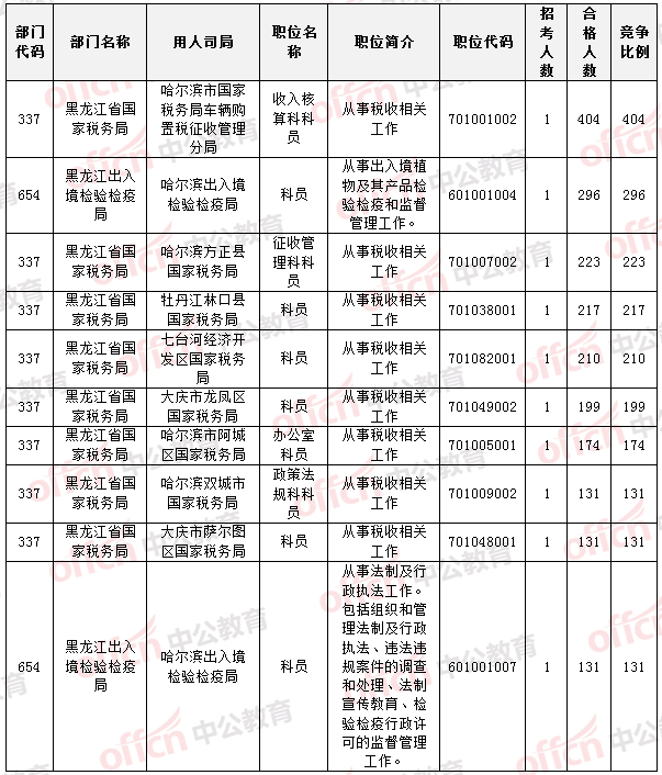 截至22日8時,招錄比例的職位為黑龍江省國家稅務(wù)局哈爾濱市國家稅務(wù)局車輛購置稅征收管理分局收入核算科科員一職,招錄1人,審核通過人數(shù)已經(jīng)達到404人,連續(xù)多日霸占首位,具體信息如下: