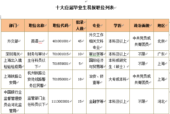 2015國家公務(wù)員考試應(yīng)屆畢業(yè)生易報職位排行