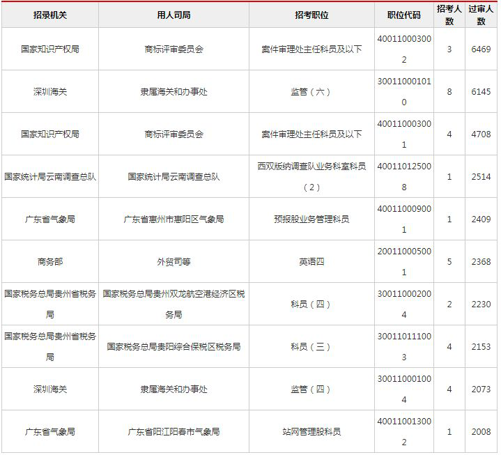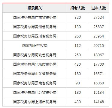 2019國(guó)考報(bào)名過(guò)審人數(shù)最多前十職位