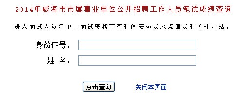 2014山東威海市屬事業(yè)單位招聘筆試成績查詢?nèi)肟?/h1>