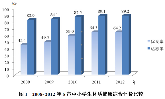 圖1 2008~2012年S市中小學生體質健康綜合評價比較