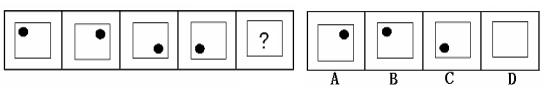 (答案:B。黑點在正方形中順時針移動。在第5個圖形中,應(yīng)該正好移動到左上角。)