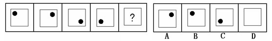 (答案:B。黑點在正方形中順時針移動。在第5個圖形中,應(yīng)該正好移動到左上角。)