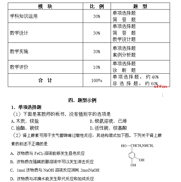《化學(xué)學(xué)科知識(shí)與教學(xué)能力》(高級(jí)中學(xué))筆試大綱