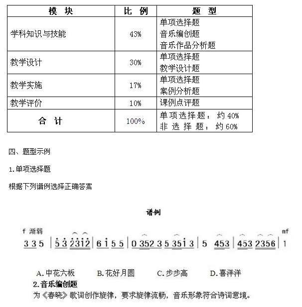 1. 熟知高中音樂課程性質(zhì)、課程理念、課程目標(biāo),掌握《普通高中音樂課程標(biāo)準(zhǔn)(實(shí)驗(yàn))》所規(guī)定的內(nèi)容與要求,了解世界音樂教育體系。