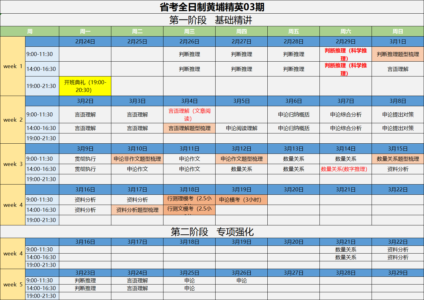 2020年省考黃埔全日制課表03期