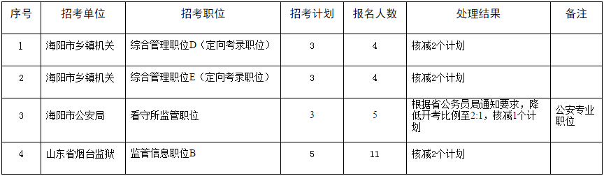 2015年山東省煙臺(tái)市公務(wù)員考試錄用計(jì)劃核減情況公告