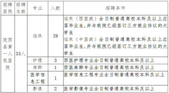 1、具有中華人民共和國國籍。2、擁護(hù)中華人民共和國憲法,擁護(hù)中國共產(chǎn)黨領(lǐng)導(dǎo)和社會主義制度。3、具有良好的政治素質(zhì)和道德水平。4、具有正常履行崗位職責(zé)的身體條件和心理素質(zhì)。5、具備全日制普通高等學(xué)校本科及以上學(xué)歷,(報(bào)考臨床醫(yī)學(xué)專業(yè)的必須是應(yīng)屆畢業(yè)生,并與我院已經(jīng)簽訂三方就業(yè)協(xié)議的大學(xué)生)。應(yīng)屆畢業(yè)生必須7月30日前拿到畢業(yè)證書和學(xué)位證書。6、年齡在18周歲以上、35周歲以下(1985年4月15日至2002年4月15日期間出生);7、熱愛醫(yī)療衛(wèi)生事業(yè),具備報(bào)考崗位所需的資格條件,具有招聘崗位所需專業(yè)知識和業(yè)務(wù)能力,所學(xué)專業(yè)必須與招聘崗位所需專業(yè)對應(yīng)。8、縣外在職人員(含已簽訂就業(yè)協(xié)議的人員)應(yīng)聘,須征得所在單位同意并出具證明材料。縣外定向委培生應(yīng)聘的,須征得定向委培單位同意解除定向委培協(xié)議并出具證明材料。9、有下列情形的,不予招聘:曾受過刑事處罰和曾被開除公職的人員;在公務(wù)員招考和事業(yè)單位公開招聘中被招考(聘)主管機(jī)關(guān)認(rèn)定有嚴(yán)重違紀(jì)違規(guī)行為的人員、以及法律規(guī)定不得聘用的其他情形的人員;尚未解除紀(jì)律處分或正在接受紀(jì)律審查的人員、刑事處罰期限未滿或者涉嫌違法犯罪正在接受調(diào)查的人員;我縣事業(yè)單位在職在編人員以及其他不符合國家規(guī)定招聘條件的人員;縣內(nèi)定向委培生及提供虛假證件及材料的人員。10、現(xiàn)役軍人不得報(bào)考。