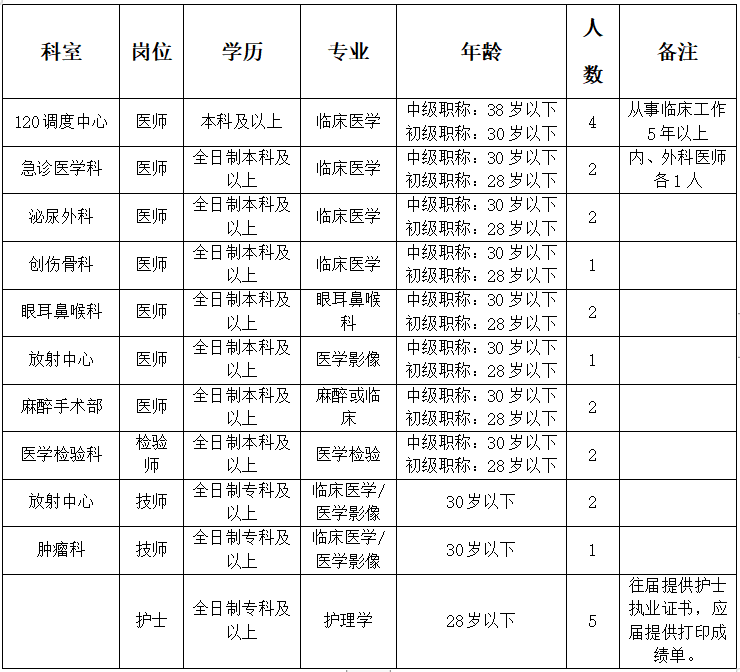 因業(yè)務(wù)發(fā)展需要,為適應(yīng)醫(yī)院發(fā)展形勢(shì),緩解人才需求,進(jìn)一步做好人才儲(chǔ)備,我院面向社會(huì)招聘相關(guān)醫(yī)療衛(wèi)生人才若干名?,F(xiàn)將有關(guān)事項(xiàng)公告如下: