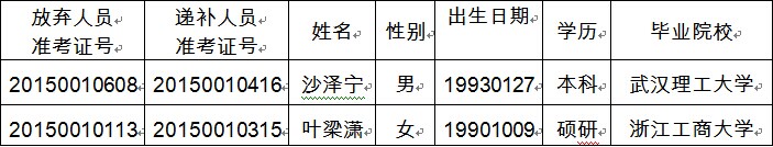 因2015年寧波市海曙區(qū)面向高校學(xué)生干部選拔街道(部門)工作人員第一批擬聘用人員2名考生放棄,確定遞補考察對象2人,現(xiàn)考察工作已結(jié)束,根據(jù)考察結(jié)果確定第二批擬聘用人員共2人,現(xiàn)將名單公布如下: