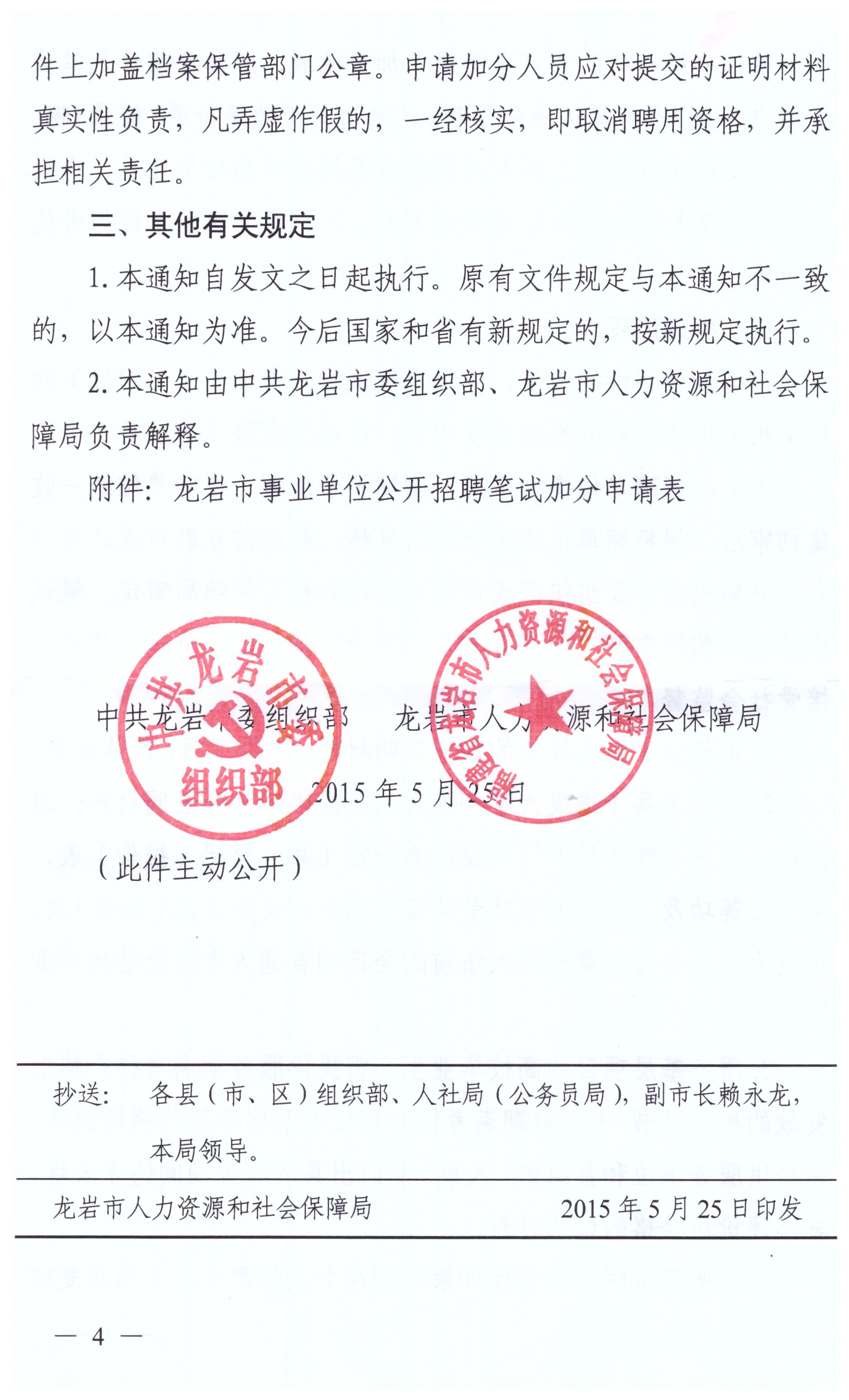 2015福建長汀縣市直事業(yè)單位招聘筆試加分有關(guān)事項通知
