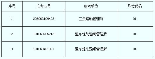 三、資格復(fù)審對象: 資格復(fù)審不合格或主動放棄的部分職位,從筆試合格人員中按計劃招錄人數(shù)1:3的比例,由到低分依次確定進入資格復(fù)審的遞補人員,具體名單如下: