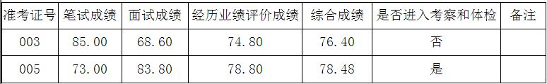 根據(jù)《曲靖市人民政府法制辦公室2015年公開遴選公務員實施方案》的規(guī)定,綜合成績構(gòu)成為:筆試成績占40%,面試成績占40%,經(jīng)歷業(yè)績評價占20%?,F(xiàn)將曲靖市人民政府法制辦公室2015年公開遴選公務員進入經(jīng)歷業(yè)績評價人員的筆試、面試、經(jīng)歷業(yè)績評價、綜合成績及進入考察和體檢人員名單公告如下: