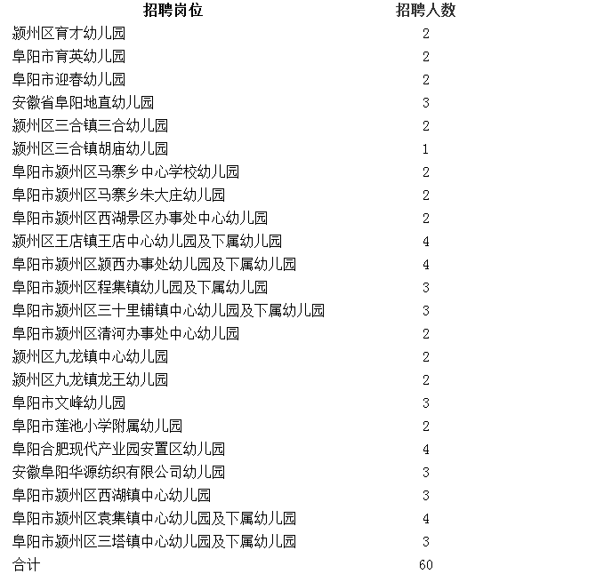 現(xiàn)將潁州區(qū)2015年度公開招聘幼兒教師設置崗位及招聘人數(shù)補充公告如下: