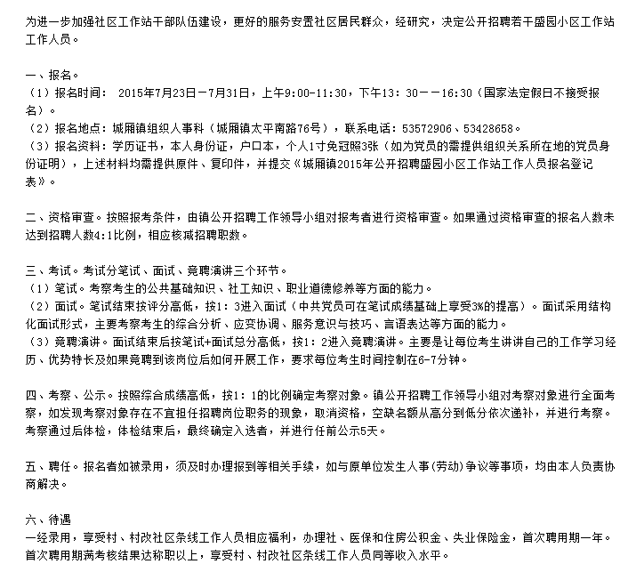 原標(biāo)題:城廂鎮(zhèn)2015年公開招聘盛園小區(qū)工作站工作人員簡(jiǎn)章