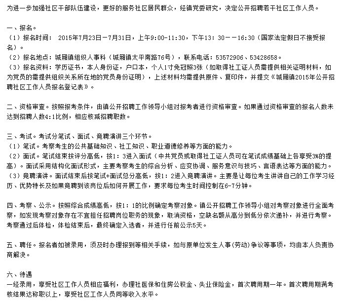 原標(biāo)題:城廂鎮(zhèn)2015年公開(kāi)招聘社區(qū)工作人員簡(jiǎn)章