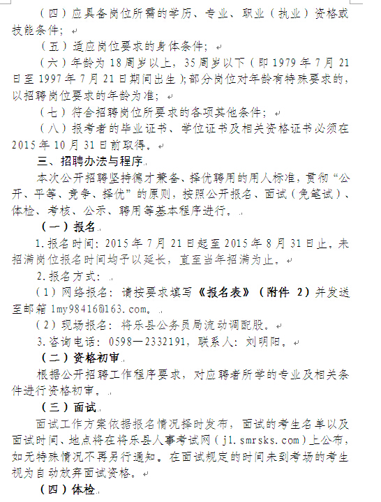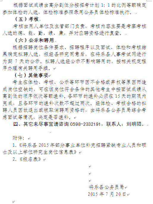 2015福建將樂縣事業(yè)單位補充招聘緊缺專業(yè)人才和碩士及以上學位研究生公告【招35人】
