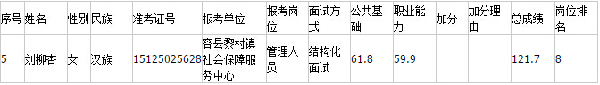 《2015年容縣事業(yè)單位公開招聘工作人員考試進(jìn)入面試資格復(fù)審人員的公告》中容縣黎村鎮(zhèn)社會服務(wù)中心管理人員招聘人數(shù)2人,從到低分按1:3的比例,比例內(nèi)末位2名考生筆試總成績并列第六名,同時確定為進(jìn)入面試范圍人選,總共有7名考生進(jìn)入該崗位面試資格復(fù)審。在面試資格復(fù)審時其中一名考生放棄了面試機(jī)會,比例內(nèi)進(jìn)入面試范圍人選為6名考生,按1:3比例不能進(jìn)行遞補(bǔ)。因此,取消《2015年容縣事業(yè)單位公開招聘工作人員考試遞補(bǔ)進(jìn)入面試資格復(fù)審人員的公告》中劉柳杏同志遞補(bǔ)進(jìn)入面試資格復(fù)審人員資格,具體名單如下表: