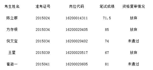 根據(jù)《桐城市2015年公開招聘事業(yè)單位工作人員公告》規(guī)定,資格復(fù)審工作已于7月31日17:00結(jié)束,共有5個缺額(見下表)。