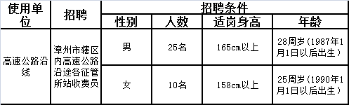 2015福建省高速公路有限責(zé)任公司漳州管理分公司招聘35人公告