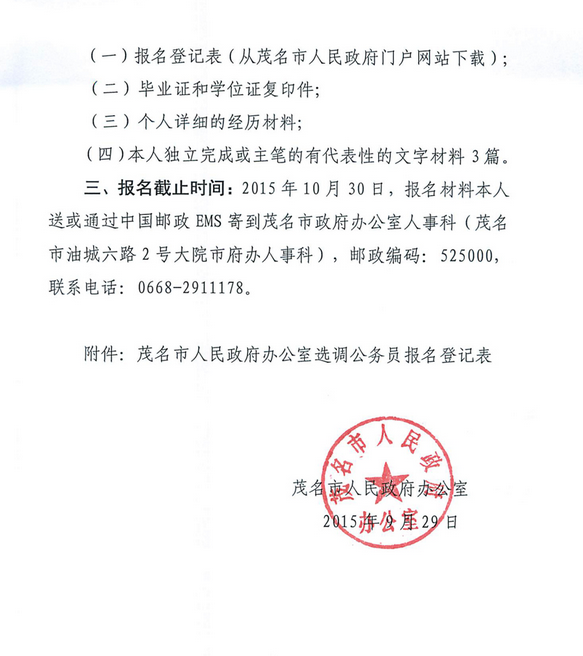 2015廣東茂名市府辦選調(diào)公務(wù)員4人公告
