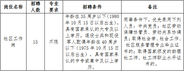 本次共計(jì)招聘15名社區(qū)工作人員。詳見下表: