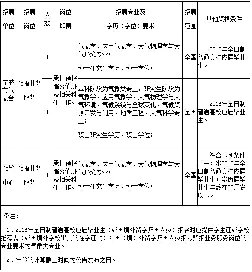 原標(biāo)題:寧波市氣象局下屬事業(yè)單位公開招聘工作人員公告(一)