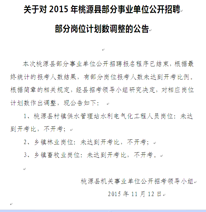 2015湖南桃源縣事業(yè)單位招聘部分崗位計(jì)劃數(shù)調(diào)整公告